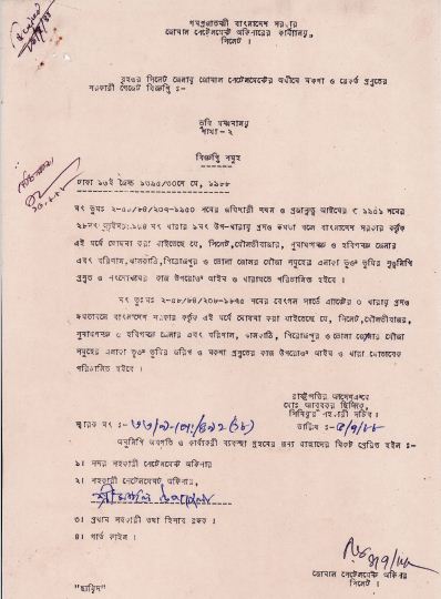 ১৬ জৈষ্ঠ্য ১৩৯৫ বঙ্গাব্দ/ ৩০ মে ১৯৮৮ খ্রিষ্টাব্দ তারিখ ভূমি মন্ত্রণালয়ের ২-৫৮/৮৪/২৩৭ ও ২৩৮ নং স্মারকে বৃহত্তর সিলেট ও বরিশালের মোট ৮টি জেলার মৌজাসমূহের এলাকাভুক্ত ভূমির স্বত্বলিপি প্রস্তুত ও সংশোধন এবং ভূমির জরিপ ও নকশা প্রস্তুতের জন্য বাংলাদেশ সরকারের গেজেট বিজ্ঞপ্তি জারী হয়। জেলাগুলো হলো, বৃহত্তর সিলেটের সিলেট, মৌলভীবাজার, সুনামগঞ্জ ও হবিগঞ্জ এবং বৃহত্তর বরিশালের বরিশাল, ঝালকাঠি, পিরোজপুর ও ভোলা (গেজেট বিজ্ঞপ্তির ছবি দ্রষ্টব্য)।